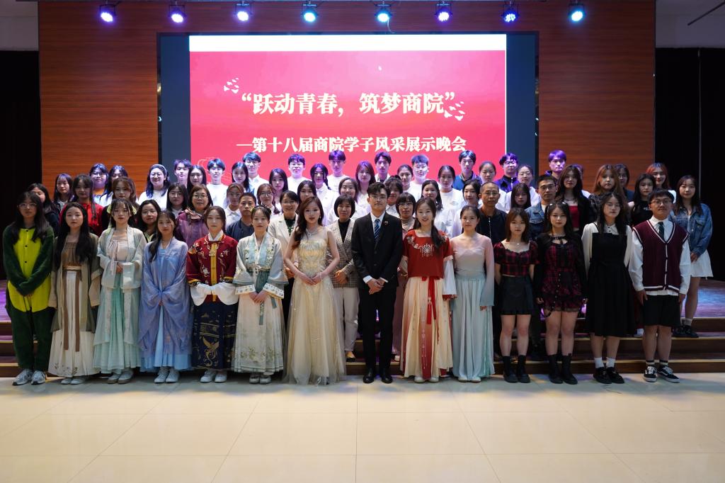 商学院于4月7日晚上在大学生活动中心举办“跃动青春·筑梦商院”第十八届风采展示晚会。商学院党委副书记侯彦利、正处级辅导员韩意来、专职教师赵培红和李涛、办公室主任刘立宾、专职组织员李珊珊、团委书记路荣、辅导员王小健、李雪松、康晗、吴子雨以及其他学院四位老师出席本次活动。本次晚会异彩纷呈,接下来让商商带你欣赏一下商院学子的风采!