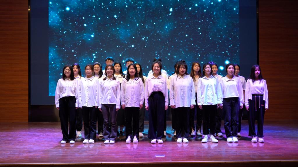 音乐的旋律响起,商院学子用动人聆听的歌喉带领着现场观众沉醉其中。《我乘着风飞过来》唱出了对前方的期待和对未来的憧憬;《微微》鼓励我们以坚韧不拔的毅力朝前走去;《等你下课》唱出了短暂但炽热的青春;大合唱《夜空中最亮的星》则是让我们在黑暗中点燃光明的火把,明确前进的方向。