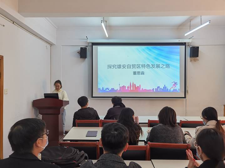 在此次论坛中,2019级国际商务研究生董思淼、齐芳铭、金磊、杨莹、洪鑫5位同学做了精彩的学术报告,论文题目分别是:《探究雄安自贸区特色发展之路》、《特斯拉汽车品牌在中国的营销策略研究》、《浅析我国跨境电商平台发展对策研究》、《跨境电商平台海外仓建设的发展对策研究》、《长城汽车企业海外拓展策略及启示》。王超杰、李涵、吴勇、郭浩、陈韬、刘杨、尚沛江等20余名2020级国际商务硕士研究生认真参与讨论,收获良多。