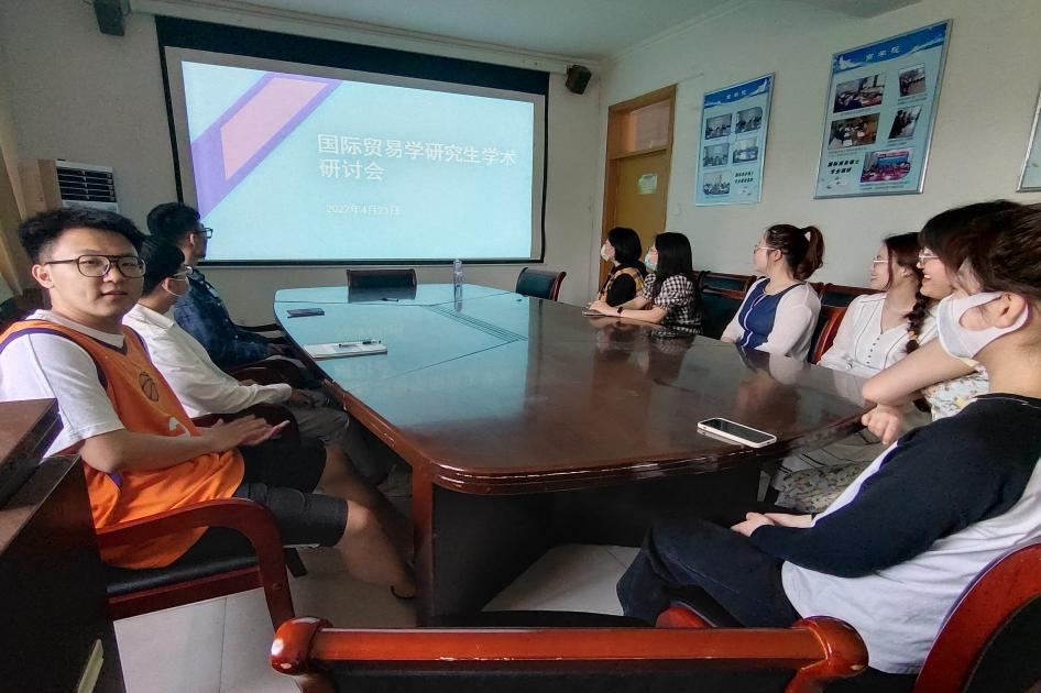 2022年4月23日下午,商学院国际贸易学专业于第三办公楼西会议室举办了“商学纵横”之国际贸易学研究生论坛,2021级硕士研究生进行学术汇报,2020级硕士研究生到场学习并给出指导建议。