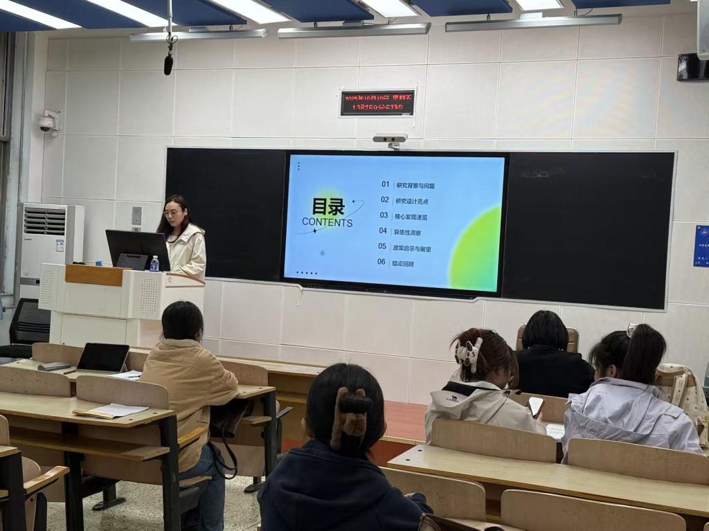 2025年10月10日下午两点,由yl23455永利集团主办的第三十一期学术沙龙在第三教学楼B105顺利举行。本次沙龙邀请高艳老师进行指导点评,由2024级理论经济学专业的张晨、刘婕、王楠三位同学进行分享,yl23455永利集团2024级和2025级研究生共同参与。