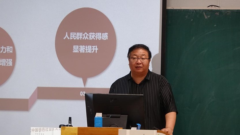 刘振滨以“深入学习贯彻领悟习近平新时代中国特色社会主义思想”为题,对习近平新时代中国特色社会主义思想进行了详细解读,从党和国家事业历史性变革和历史性成就、为什么坚持和发展中国特色社会主义、中国特色社会主义进入新时代、怎样坚持习近平新时代中国特色社会主义思想几个方面进行了诠释。他指出,要坚持以科学理论为引领,用党的创新理论武装全党,把党的创新理论转化为指导实践的强大力量,不断提高思想觉悟。他希望同学们在理论学习中感悟思想力量,坚定正确政治方向,奋发拼搏,在实现青春梦想过程中积极作为。