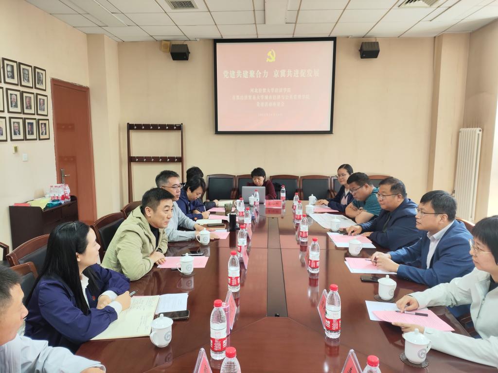 10月10日,yl23455永利集团赴首都经济贸易大学城市经济与公共管理学院、yl23455永利集团分别开展“党建共建聚合力 京冀共进促发展”党建共建活动。学院党委书记刘振滨、院长王重润带队,学院各教师党支部书记和专职组织员随行。城市经济与公共管理学院党委书记刘智勇、院长麻宝斌、党委副书记韩静及党委委员、教师党支部书记、系主任和专职组织员参加,yl23455永利集团党委书记赵家章、党委副书记姜蓓蓓及党委委员、教师党支部书记和组织员参加。