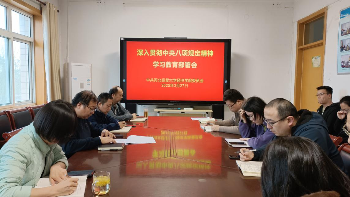 刘振滨传达了学校深入贯彻中央八项规定精神学习教育部署会的精神,结合校党委《关于在全校开展深入贯彻中央八项规定精神学习教育的工作方案》(冀经贸党〔2025〕16号)的相关要求,对学院扎实开展中央八项规定精神学习教育进行全面部署安排。