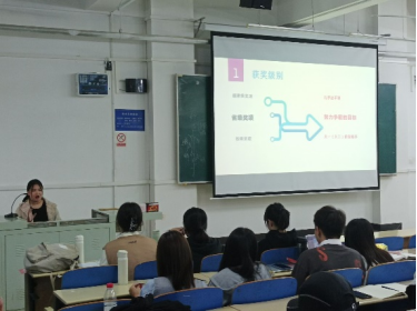 10月14日下午,商学院科研部在北三教B501举办科研培训讲座,邀请商学院大三优秀学长张哲,大三优秀学姐任昭曈为大家讲授科研比赛的经历和经验。学工办主任李珊珊老师出席讲座,大家积极踊跃地参加此次讲座活动。