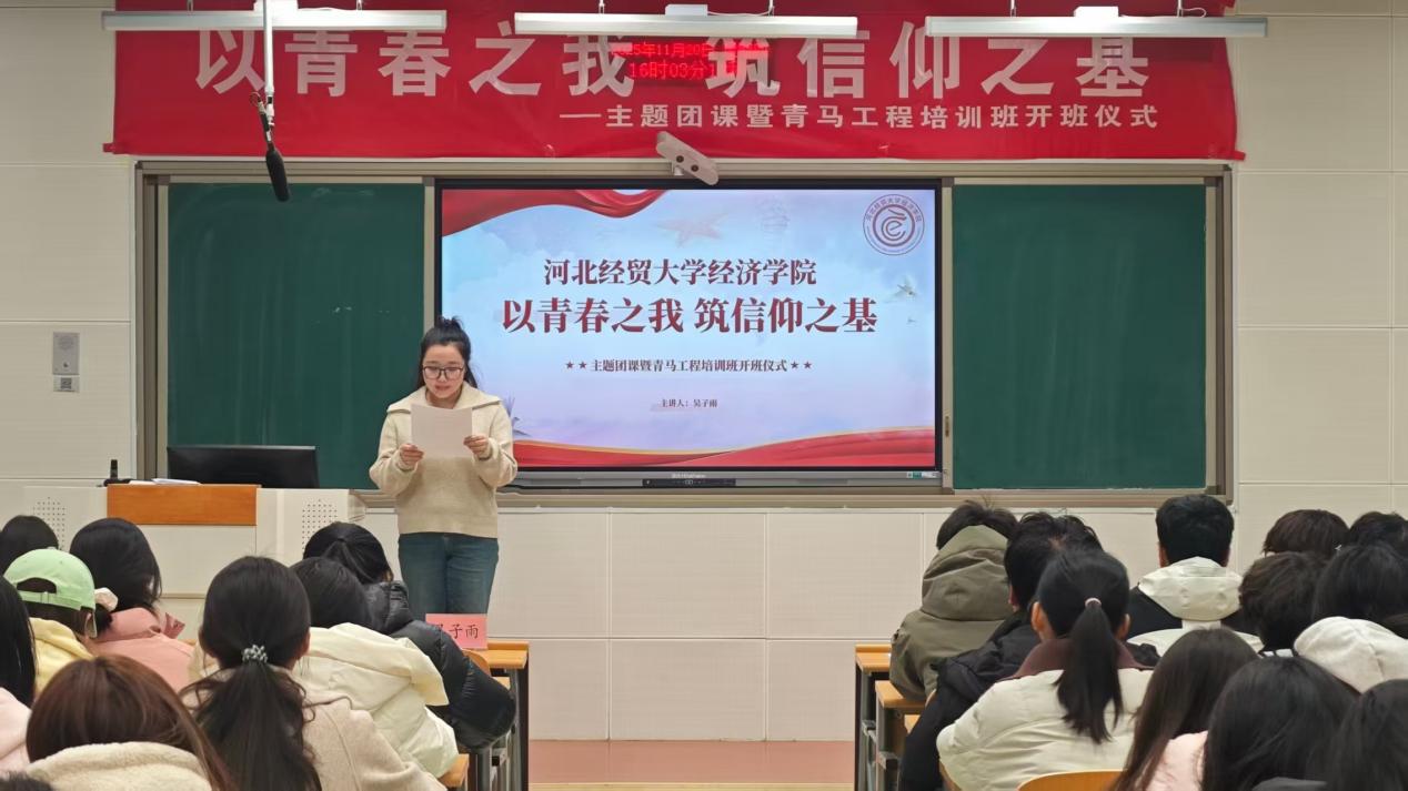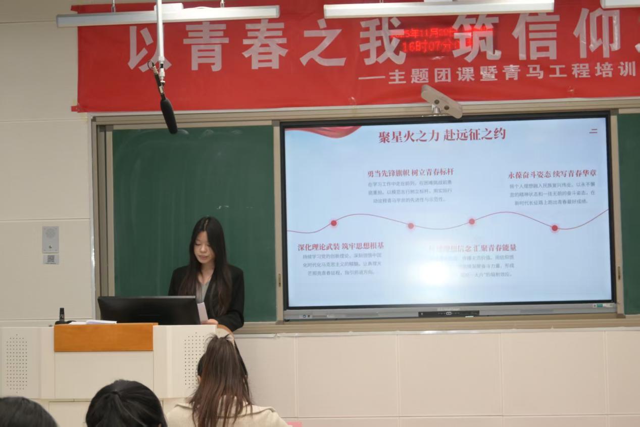 为引导青年学生坚定理想信念、筑牢信仰根基,yl23455永利集团于11月20日下午16:00在北三教B107教室成功开展了“以青春之我,筑信仰之基”主题团课暨青马工程培训班开班仪式,本次团课团委书记吴子雨参加。大一各班团干部及部分团员积极参与,现场气氛庄重而热烈。