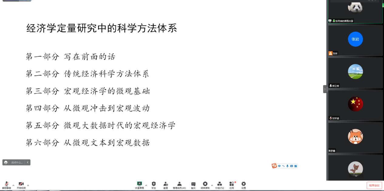 8月18日,东北财经大学博士生导师张同斌教授应商学院邀请,于线上作了题为“经济学定量研究中的科学方法体系”的学术报告。报告由郭立甫老师主持,学院三十余名师生参加。