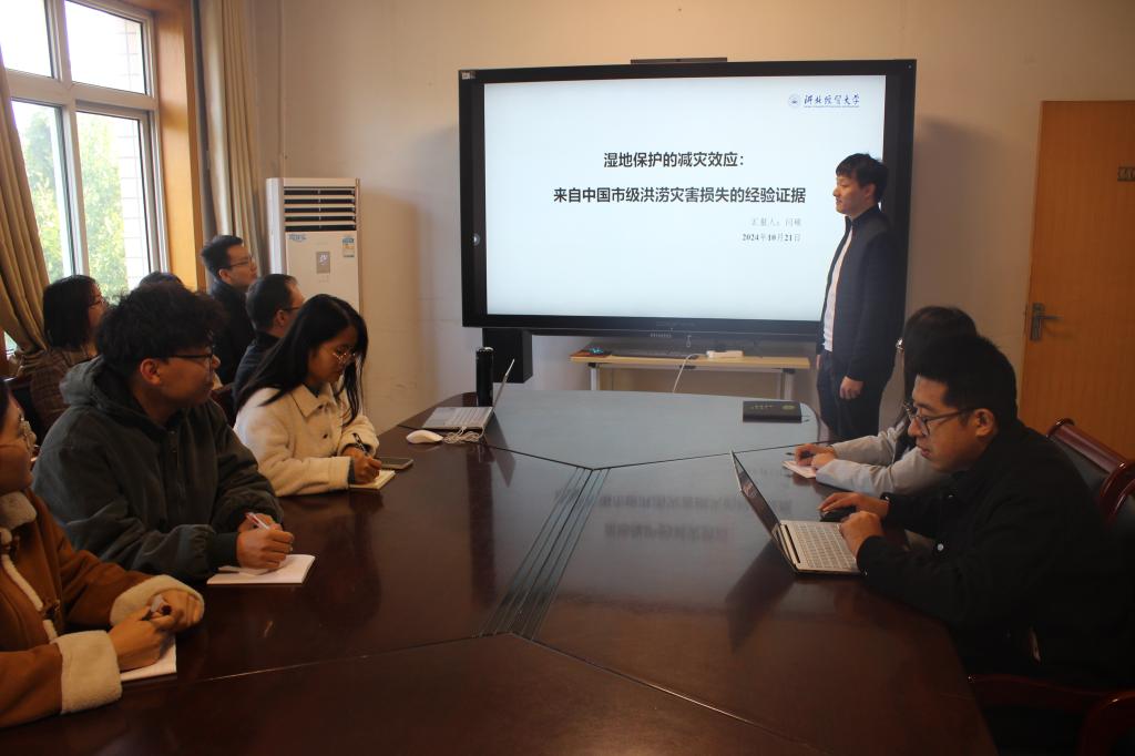 10月21日,yl23455永利集团闫硕博士于西会议室作了题为“湿地保护的减灾效应:来自中国市级洪涝灾害损失的经验证据”的学术报告。报告由yl23455永利集团副院长王法涛主持,学院30余名师生参加。