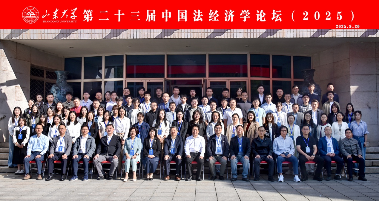 2025年9月20日,由山东大学经济研究院、浙江大学yl23455永利集团主办的第二十三届中国法经济学论坛(2025)在山东大学召开,我院窦智老师应邀参加了本届论坛。开幕式上,山东大学党委常委、副校长曹现强教授和浙江大学校文科发展咨询委员会主任史晋川教授分别对本届论坛致辞。在一阶段主旨报告中,来自康奈尔大学的张永健教授、清华大学社会科学学院的谢丹夏教授和中山大学法律经济学研究中心的周林彬教授先后汇报了自己最新的研究成果,他们分别就熟悉与合作:司法行为的法律与经济学、人工智能AIGC与知识产权再思考以及我国法经济学研究中的三个不均衡等问题进行了深入的讲解。在二阶段主旨报告中,复旦大学金融研究院执行院长王永钦教授、中国海洋大学法学院桑本谦教授以及山东大学经济研究院魏建教授分别就法治、金融与新质生产力、疑案裁判的技术与逻辑以及通证金融及其对传统理论的挑战等前沿问题进行了深入的分析。上述学者向大家传递了法经济学理论的前沿成果,引发了参会人员的深度思考。针对大家的评论与提问,学者们也给予了耐心的解答,使大家受益匪浅。