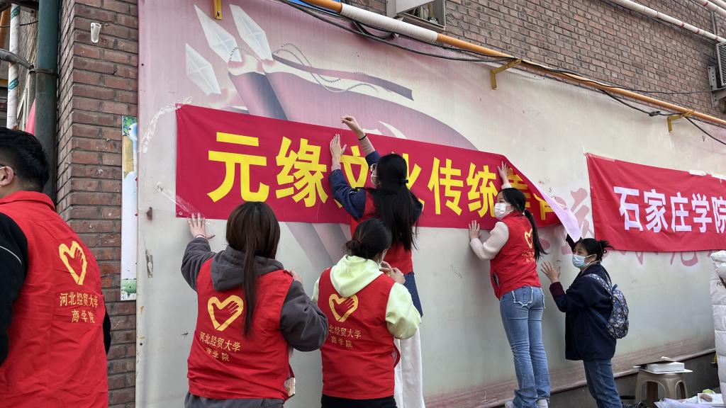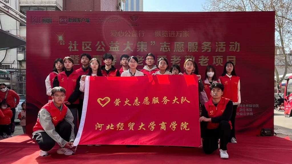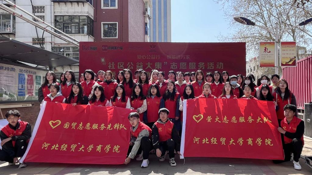 2023年3月26日,商学院萤火志愿服务大队带领70余名青年志愿者前往桥西区维明南大街社区参加 “爱心公益行,纵览进万家”社区公益大集志愿服务活动。