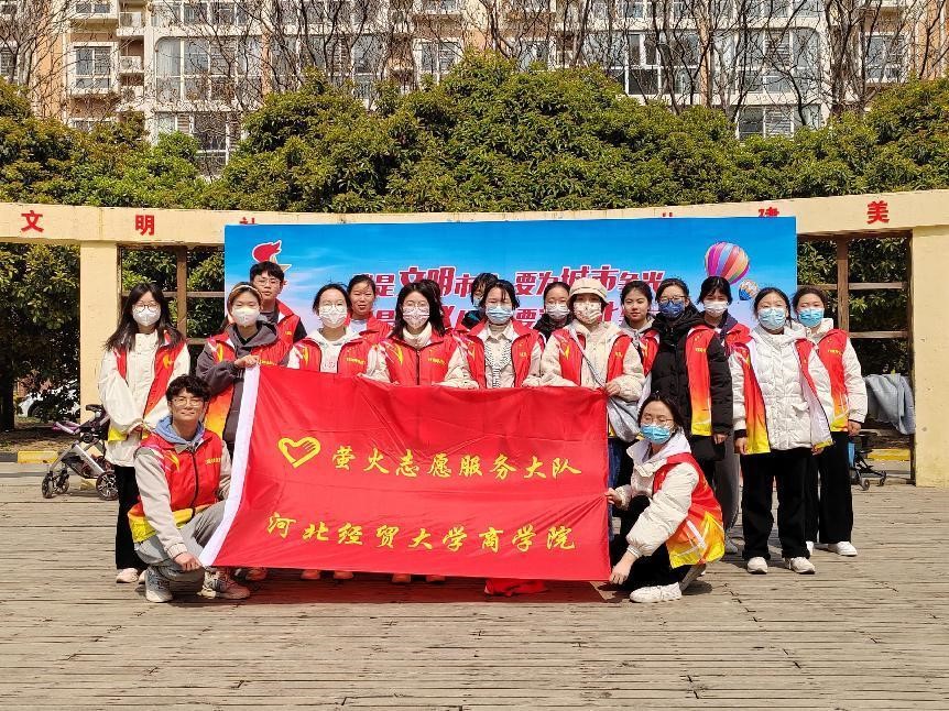 2023年3月25日,商学院于石家庄市新华区明珠花苑社区开展“红领巾社区行--探秘‘家门口‘文明”志愿服务活动。本次活动由萤火志愿服务大队组织,2022级经济1班18名青年志愿者参加。