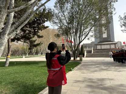 广场组的志愿者们稳重踏实,他们维持着烈士陵园和纪念馆的活动秩序,引导人员有序入场,文明祭扫。