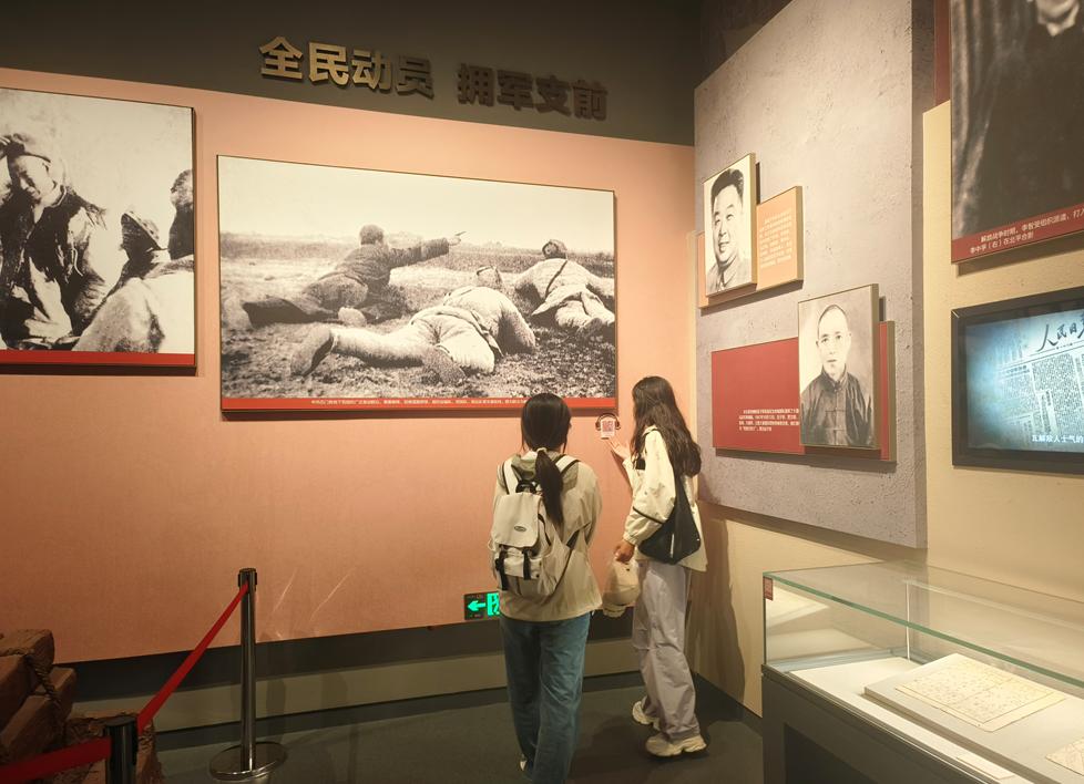 第二展厅主要展示了石家庄解放战役的全过程,以及解放后为新中国成立作出的重要贡献。通过观看历史影片和听讲解员生动讲解,同学们知晓了石家庄人民在解放战争中的英勇事迹,深刻领悟到石家庄在解放战争中的重要地位。