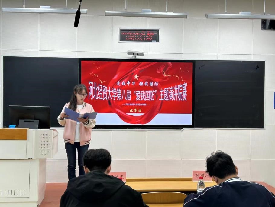 比赛过程中,选手们对一桩桩国防事件的阐述展现出了独到的见解,他们用慷慨激昂的语言讲出了令人振奋的故事。展望未来,他们宣示了自己勇于担当的决心,十足的感染力令我们深受触动。他们怀着浓厚的爱国情怀与坚定的理想信念表达了对国防的热爱与敬意,展现出了新时代青年之奕奕风采!选手们各抒己见,以文稿为帆、PPT配乐为桨、以热烈激昂的演讲为船,自由航行在伟大中国梦,国防梦的富强航线上。选手们的热情演讲所展现的青年之思、青年之悟、青年之志迎来评委们的热烈掌声,让观众情不自禁地想为他们的表现和所展现的经济学子的青年精神面貌而喝彩。