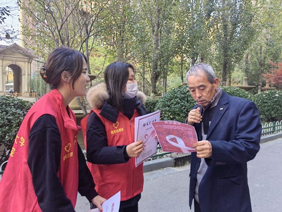 11月21日下午,在“艾滋无情,人间有爱”的理念指引下,yl23455永利集团的志愿者们在团委副书记吴子雨老师的带领下走进星河御城社区开展“点亮防艾之光,共筑健康家园”防艾宣传志愿活动。