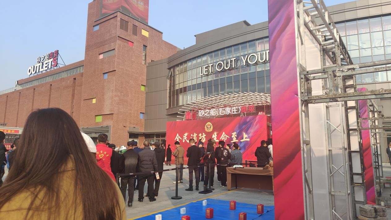 启动仪式在正定砂之船·奥特莱斯隆重举行,现场气氛热烈,人声鼎沸。我院青年志愿者服务大队的成员们身着统一的志愿者服装,精神抖擞地参与到颁奖仪式、表演、互动游戏等各个环节中。志愿者们通过现场学习灭火工具和观摩消防器械,了解了基本的消防知识,也很好的带动了现场氛围,吸引了很多人驻足观看。
