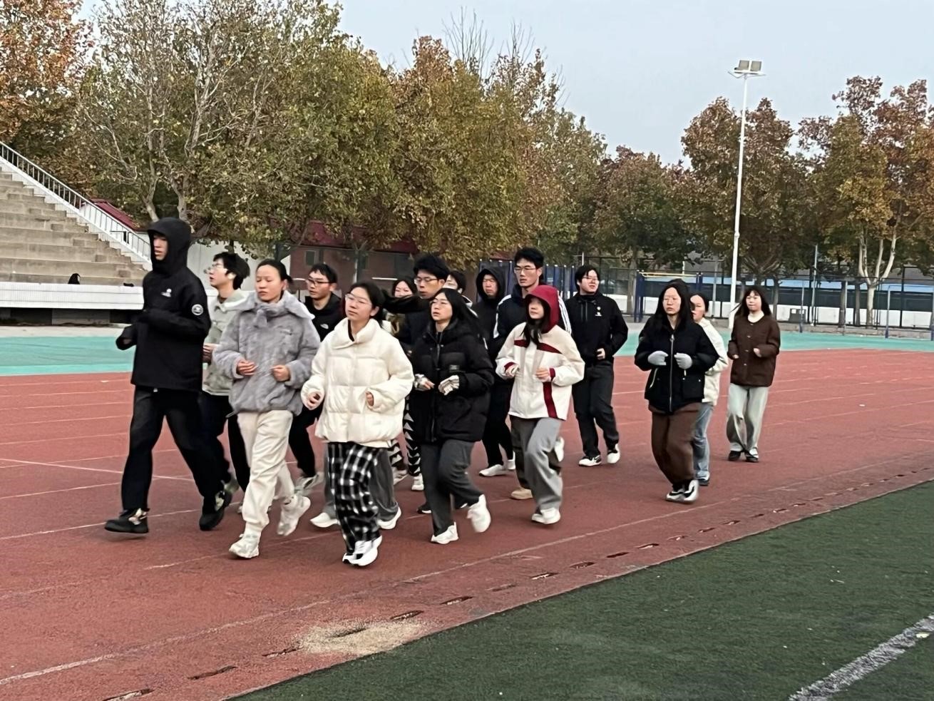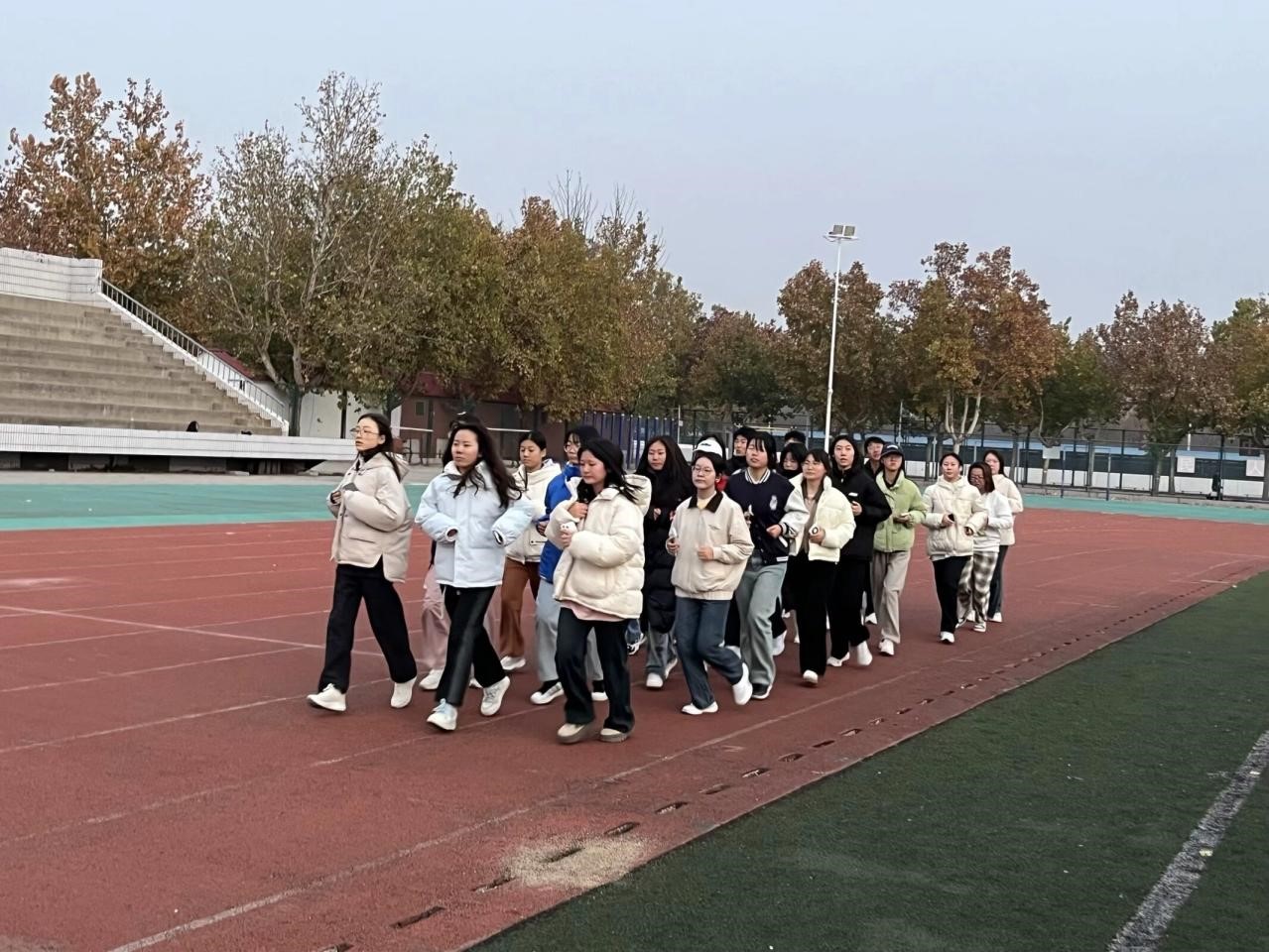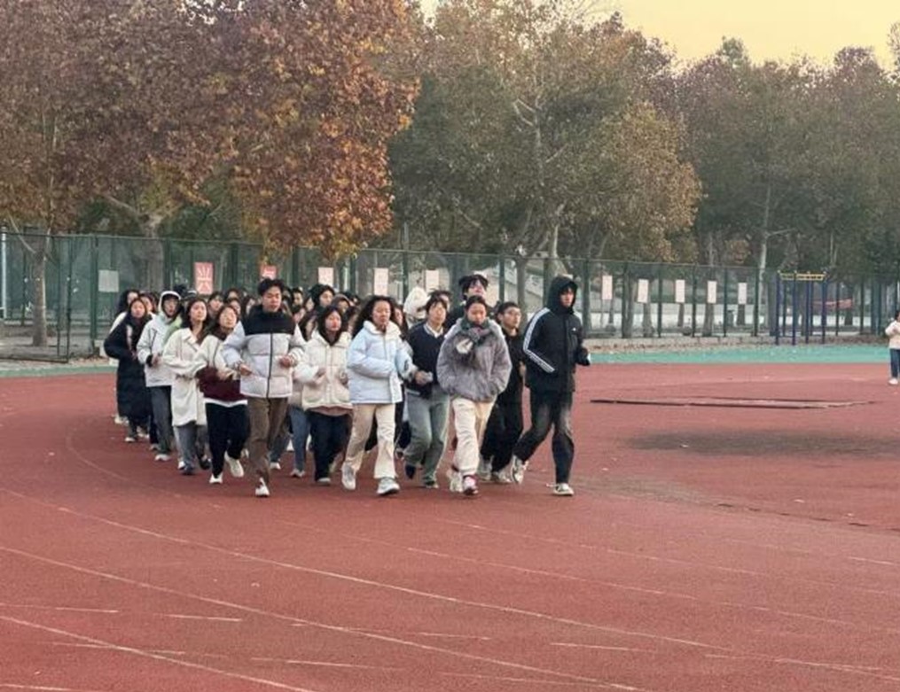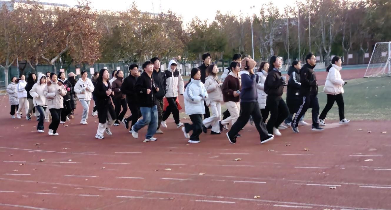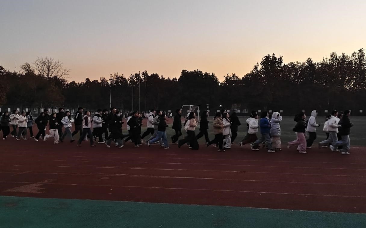 自本学期以来,每天清晨,天还未亮,参与“清晨计划”的同学们已经整齐地排列在跑道上。随着同学们脚步的落下,太阳也渐渐升起,一缕缕阳光随之撒在跑道上。同学们的身影形成了一道奇特的风景线。