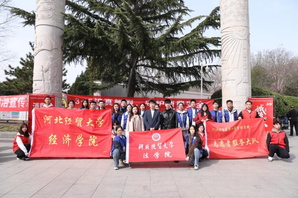 3月13日上午,在“3·15”国际消费者权益日来临之际,yl23455永利集团团委联合法学院团委、工商管理学院团委,在石家庄市水上公园开展“‘3·15’识真辨假,守护消费安全”普法宣传活动。此次活动旨在增强大学生的社会责任感,普及消费者权益保护相关法律知识,提升社区居民的法律意识和维权能力,以实际行动践行和弘扬雷锋精神。