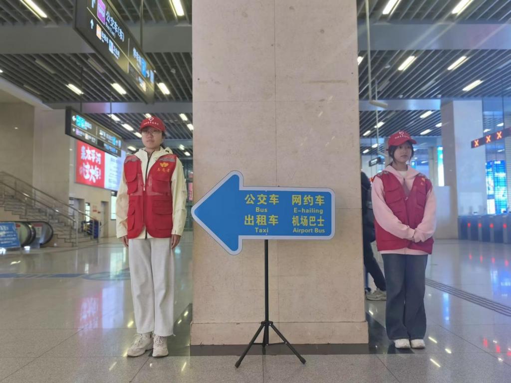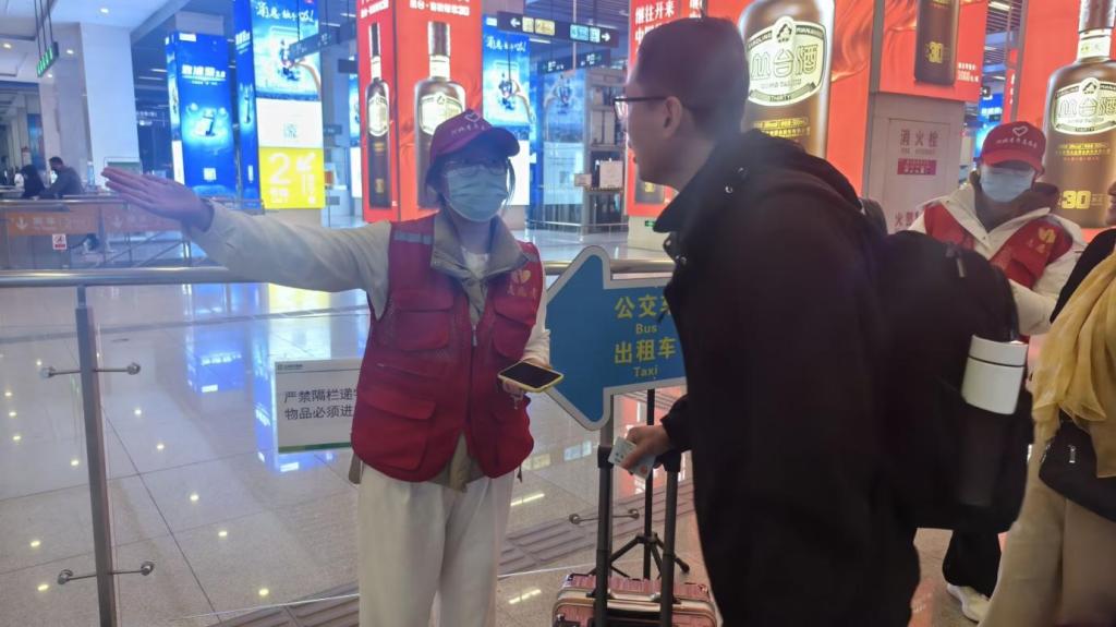 “您好,请问您需要帮助吗?”“请往这边走,检票口在前面。”……在火车站进站口、售票机、服务台等地,随处可见志愿者们忙碌的身影。他们耐心解答旅客疑问,引导旅客有序进站,用实际行动诠释着“奉献、友爱、互助、进步”的志愿精神。