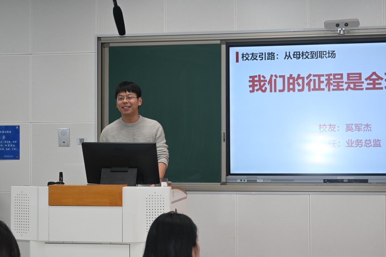 在互动答疑环节,现场气氛热烈活跃。同学们围绕专业能力要求、职业发展路径等热点问题踊跃提问。奚军杰以“过来人”的视角逐一给予了耐心、细致的解答,其真诚的分享不仅消除了同学们的诸多疑虑,更带来了深刻的启发与鼓舞,将现场气氛推向高潮。