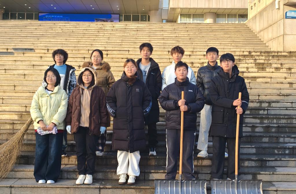 雪后初霁,气温依旧偏低,图书馆周边道路、台阶被积雪覆盖,部分区域形成薄冰,给过往师生的出行带来极大不便,也存在一定安全隐患。为切实保障雪后校园师生出行安全,营造整洁通畅的校园环境,12 月 13 日,yl23455永利集团组织志愿者在图书馆四周开展扫雪活动,由生活权益部统筹负责。