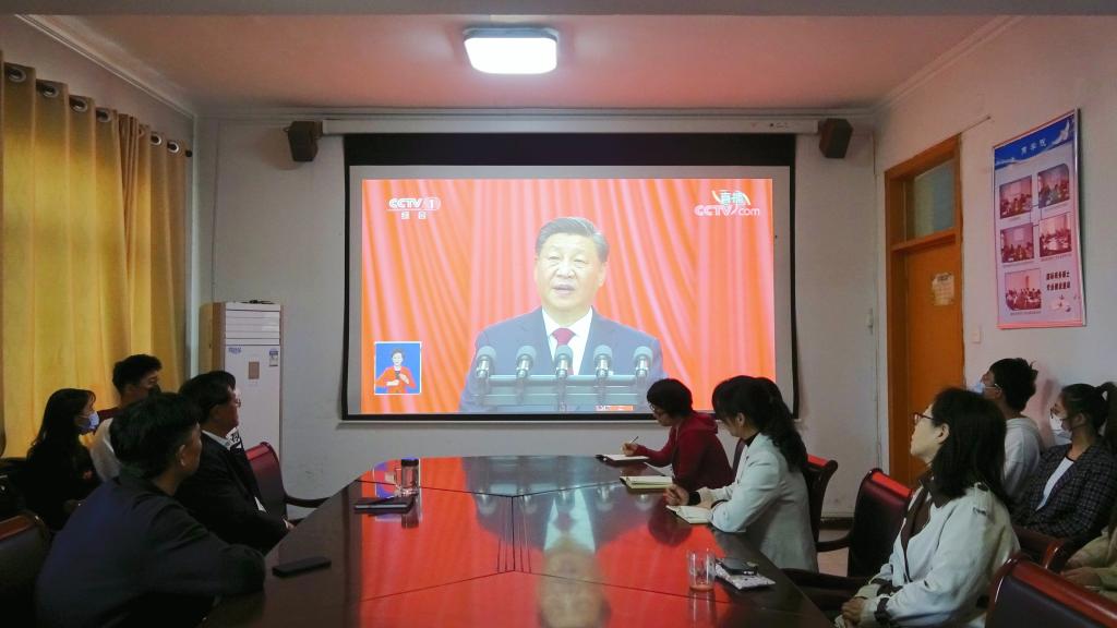 学院领导班子成员、教职工党员和部分学生代表在学院西会议室集体观看开幕式。全体人员认真聆听,倍感振奋,深受鼓舞。大家纷纷表示:要深入领会把握党的二十大的重大意义和精神实质,深刻领悟“两个确立”的决定性意义,增强“四个意识”、坚定“四个自信”、做到“两个维护”,迅速把思想和认识统一到党的二十大精神上来。要以党的二十大精神为指导,激发活力,鼓舞斗志,鼓足干劲,以更加饱满的工作热情和更加奋发有为的工作态度,做好本职工作,更好推动学院事业高质量发展,以实际行动贯彻党的二十大精神。